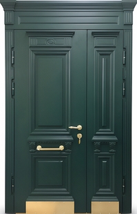 Стальная полуторная термодверь с капителями, отбойниками и панелями МДФ зеленого цвета с багетом — воплощение современного подхода к оформлению пространства. Панели из МДФ легко очищаются, не требуют сложного ухода и сохраняют презентабельный вид на протяжении многих лет. Позволяют подобрать модель под любой стиль интерьера — от классики до минимализма. Дизайн-проект подойдет для тех, кто ценит натуральные материалы.