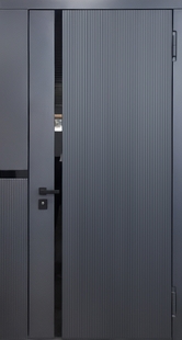 Входная квартирная дверь с широким наличником, узкой вставкой стекла и панелями МДФ графит — это идеальный вариант для тех, кто ценит сочетание классики и современных материалов. МДФ-панели обеспечивают прочность и устойчивость к перепадам температуры. Создают эффект архитектурной завершённости. Оформление обеспечивает надёжность и эстетическую привлекательность.
